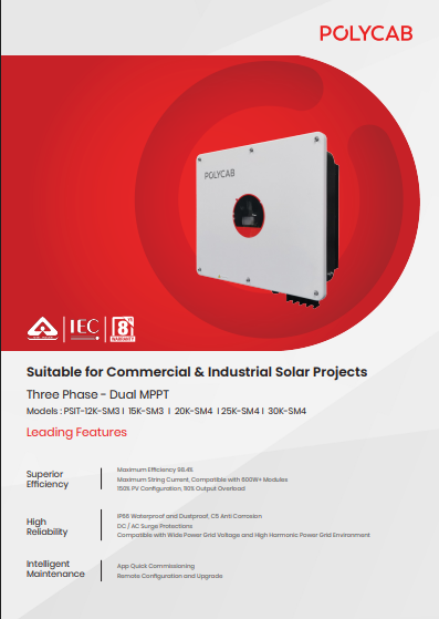 Polycab Solar Inverter- 12kW to 30kW- Three Phase- Dual MPPT- Commercial and Industrial