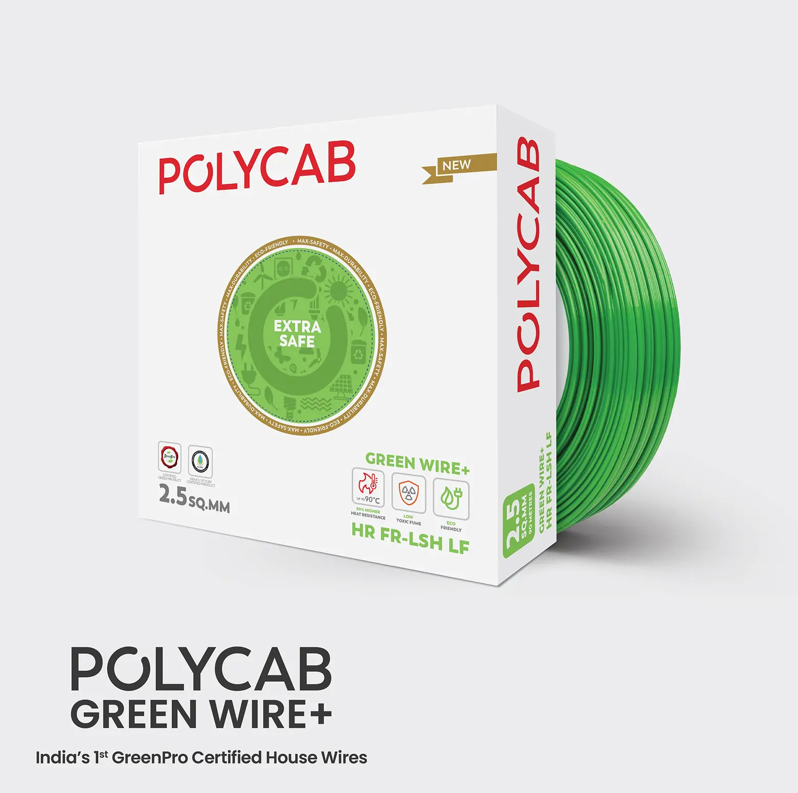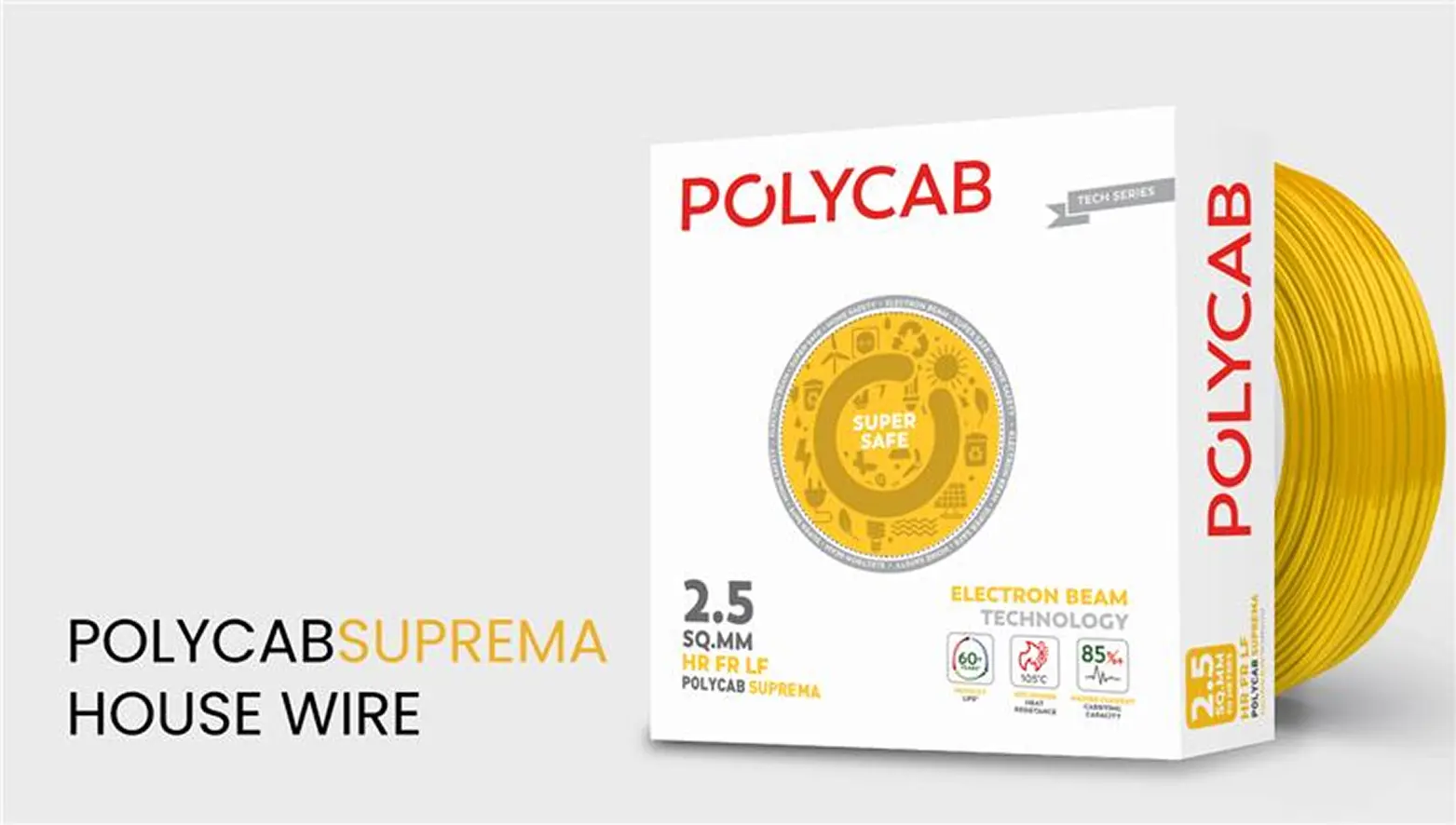 Polycab offers wires such as the POLYCABSUPREMA, POLYCABMAXIMA+ Green Wire, Etira House Wires, POLYCABOPTIMA+, POLYCABPRIMMA, Polycab Green Wire, and LF FR 180m Wires. Each of these wires varies in terms of applications, features, length, colour, and insulation.